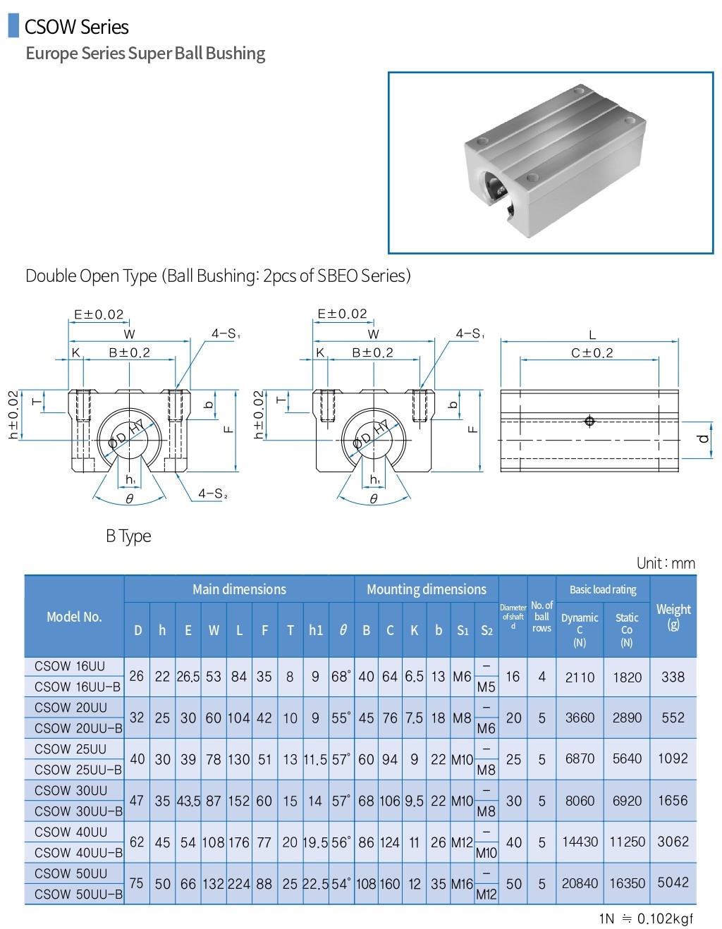 Open-type block assembled with one SBEO bushing.