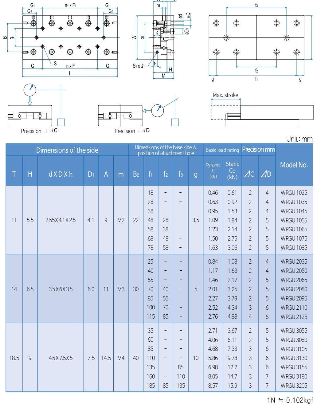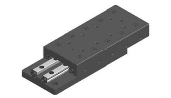 A high-precision, high-rigidity linear motion unit assembled with a cross-roller guide on a precision-machined table and base.