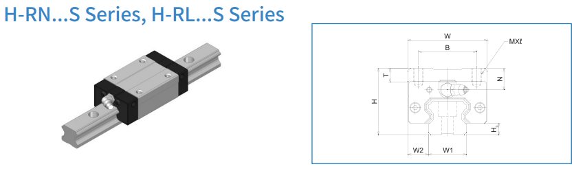– This type has the same cross-sectional shape as the H-RN series, but the total length (L1) of the linear motion block has been increased to boost the rated load.