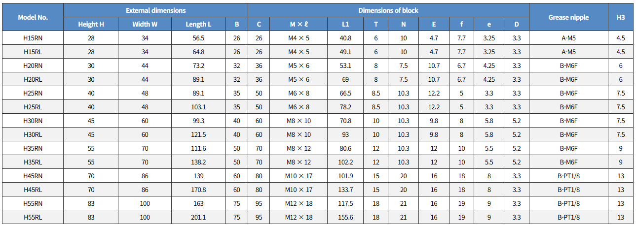 – The block length has been increased compared to the H-R type to increase the load capacity.