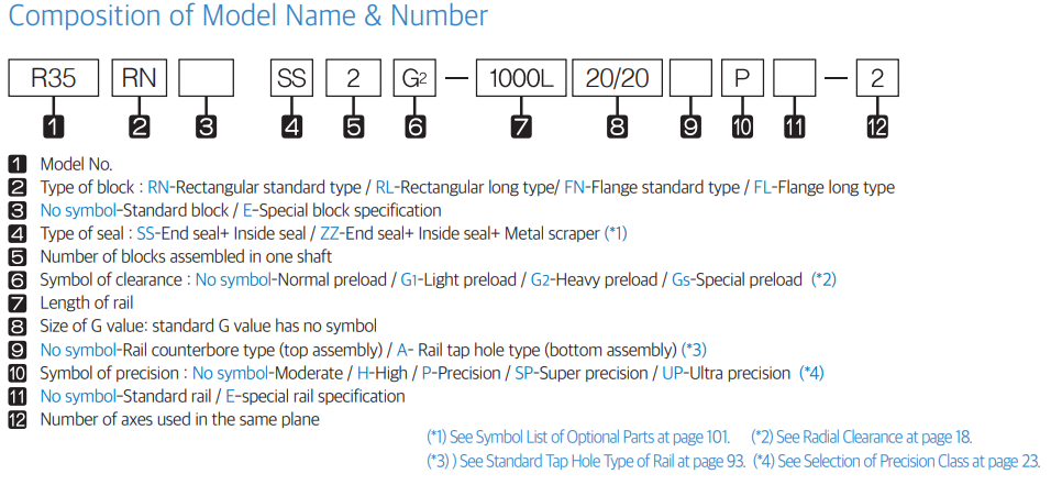 – This is a longer-type block that shares the same cross-section as the R-RN series, with an extended linear motion block to achieve a higher load rating.